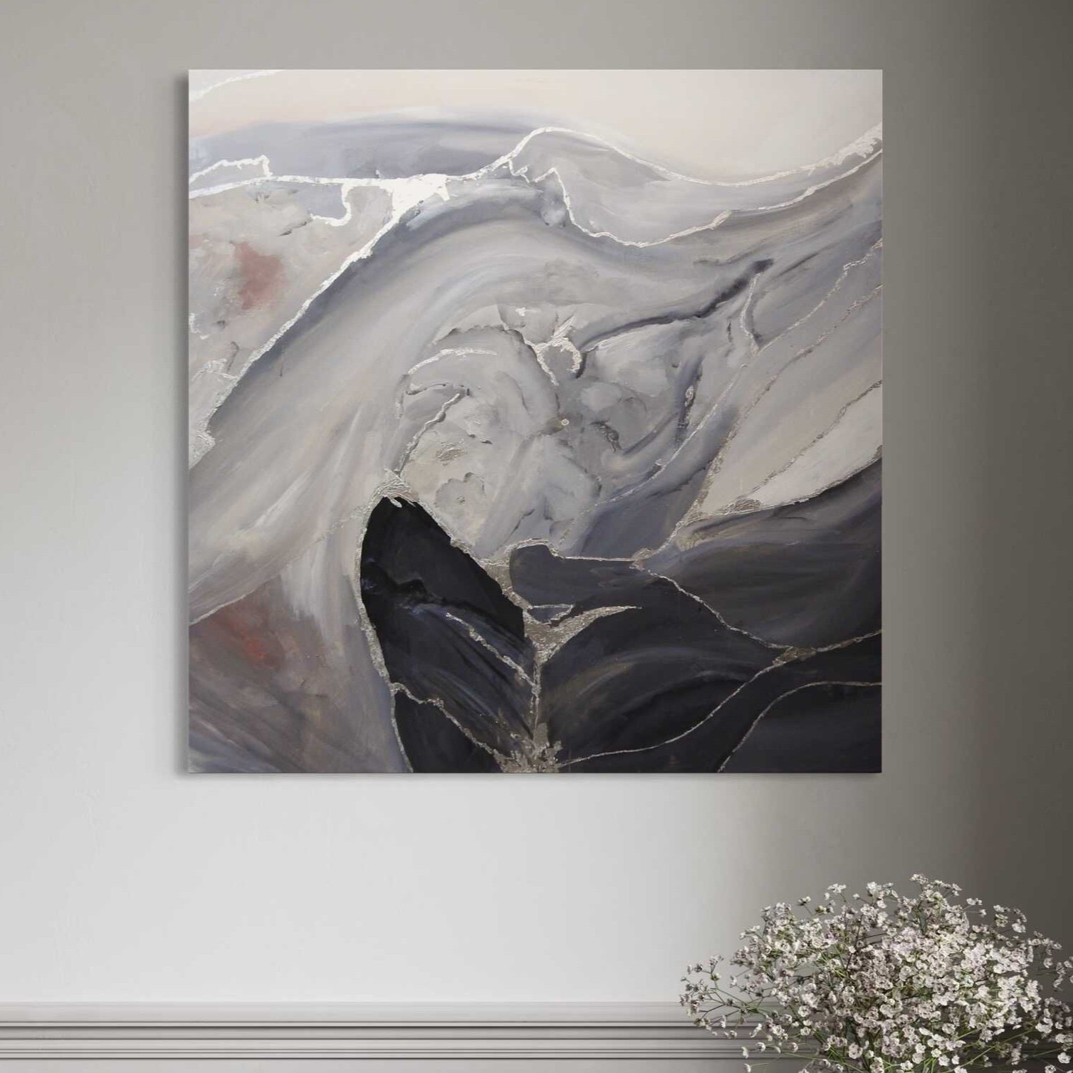 Ez az egyedi, kézzel festett absztrakt alkotás a Marble Series kollekció része, amelyet a természetes márvány rétegződése, finom erezete és időtlen eleganciája ihletett.