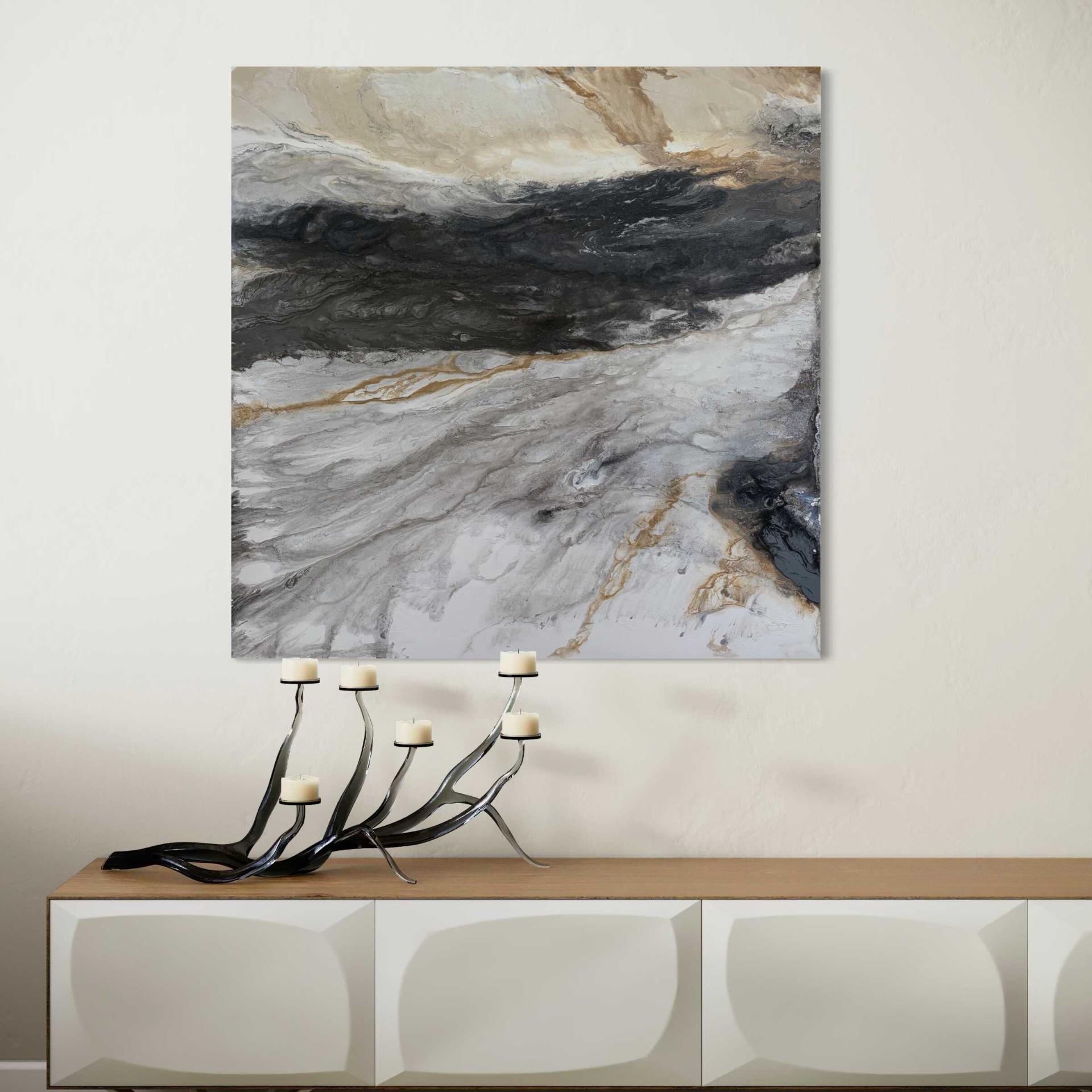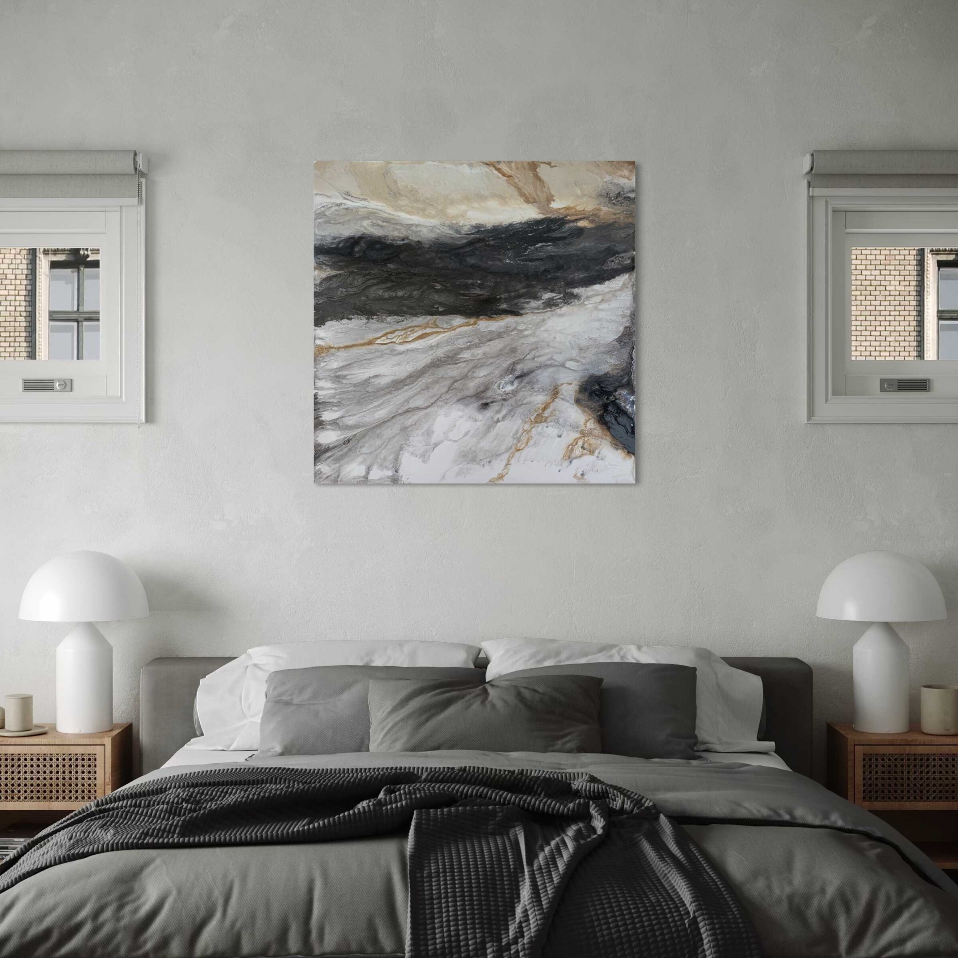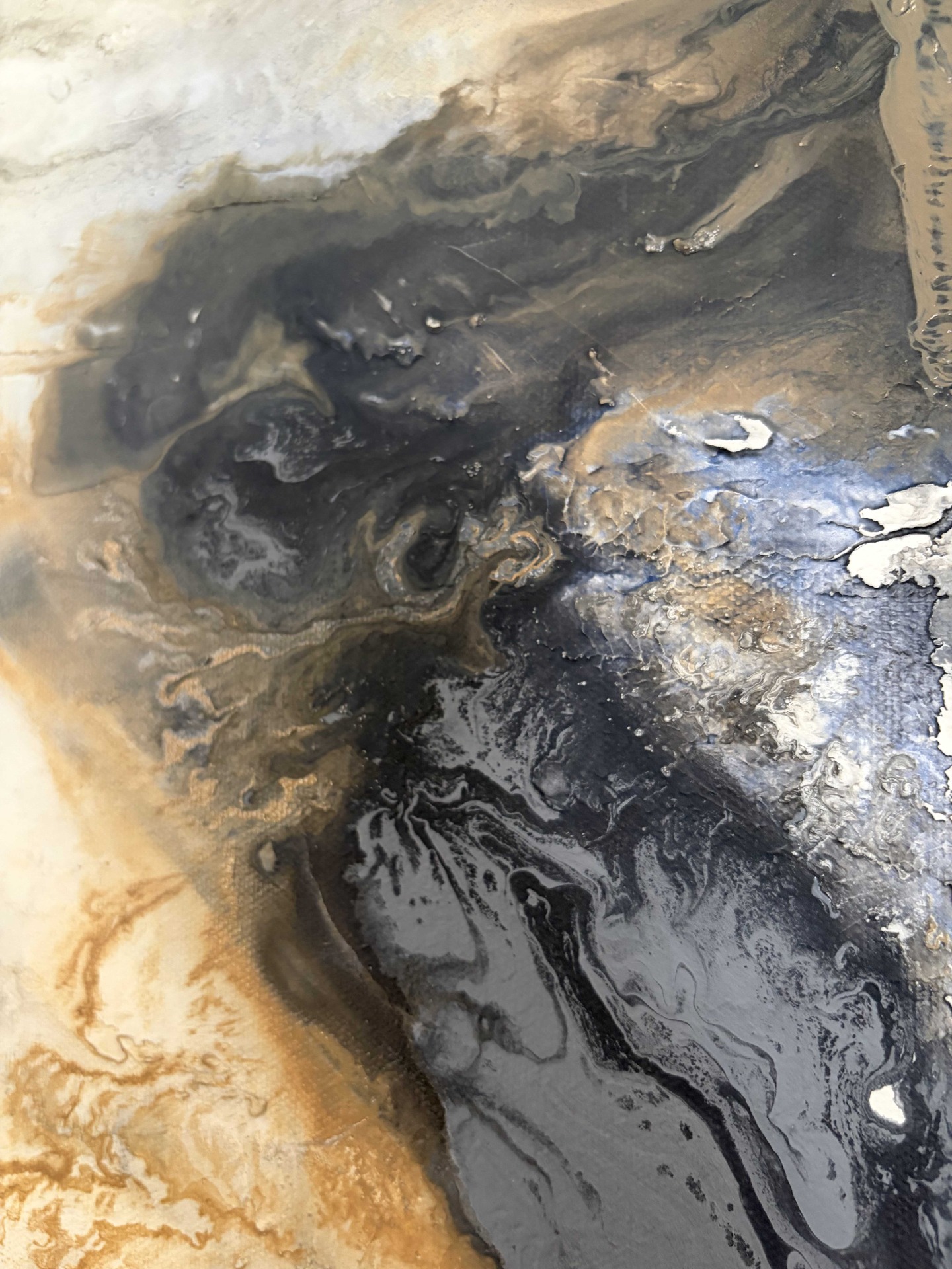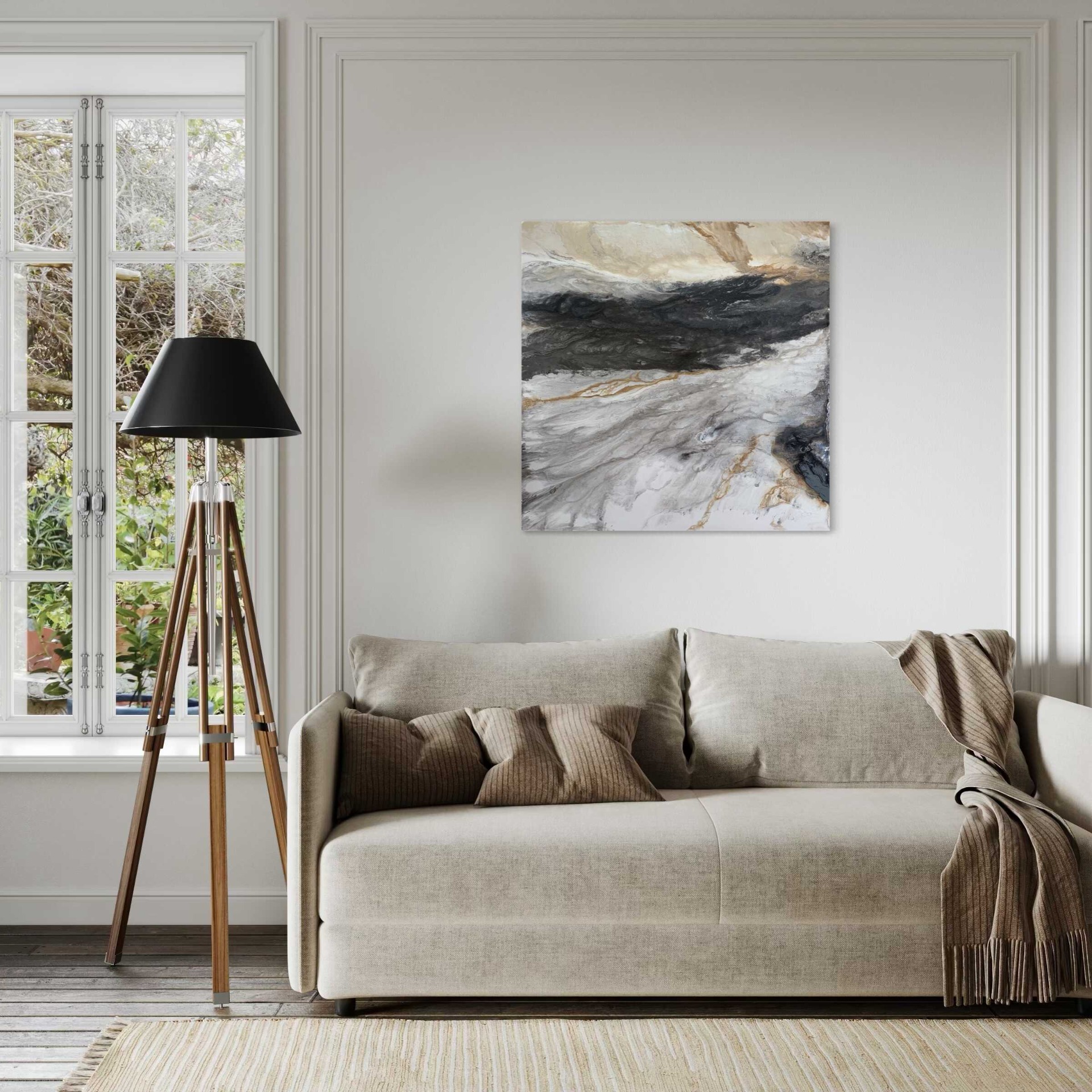 Az Áramlás a Marble Series részeként a természetes kőzetek és márvány erezetének világát idézi meg. A festmény dinamikus, áramló formái a természetben megfigyelhető rétegződéseket és mozgásokat jelenítik meg, miközben modern, letisztult kompozíciót alkotnak.