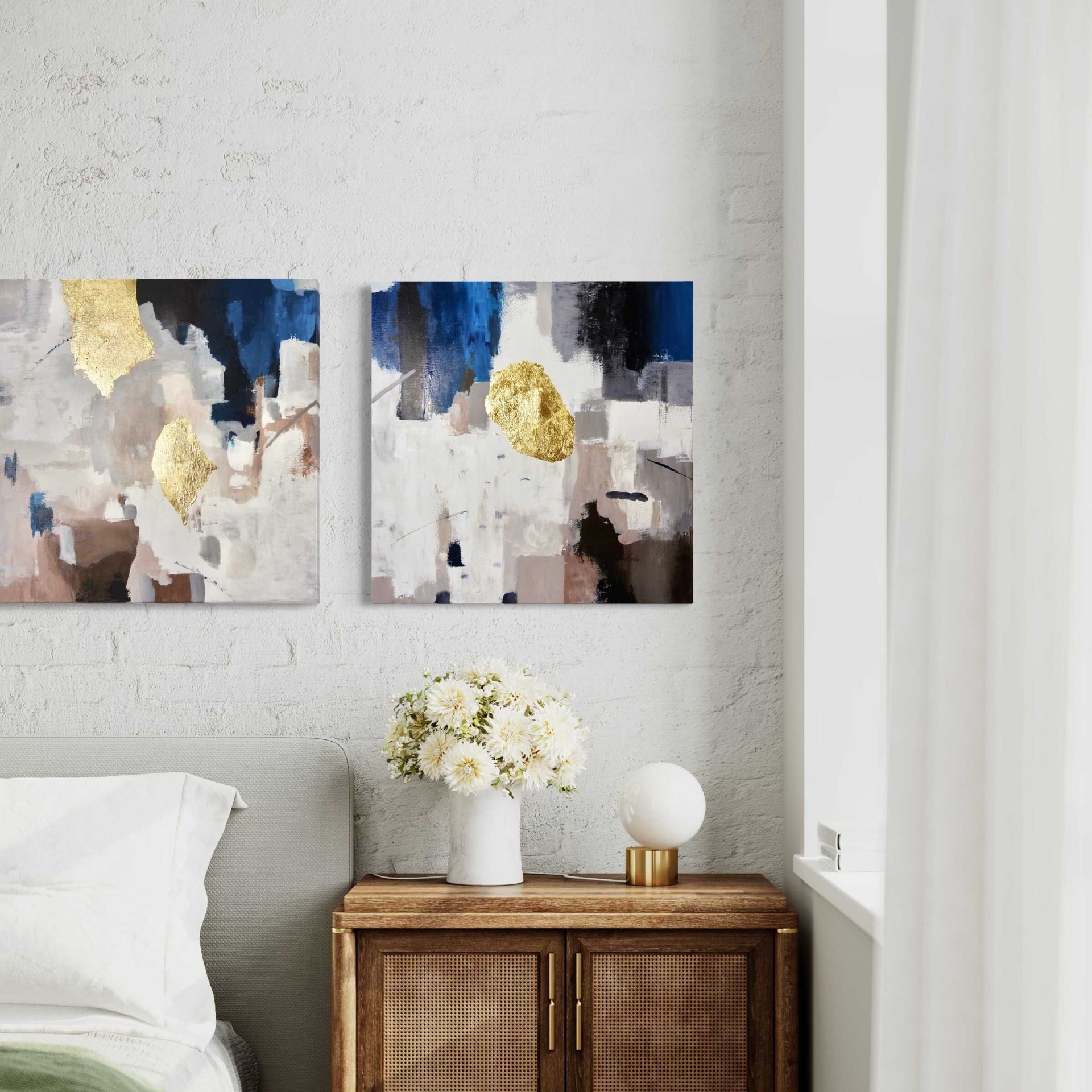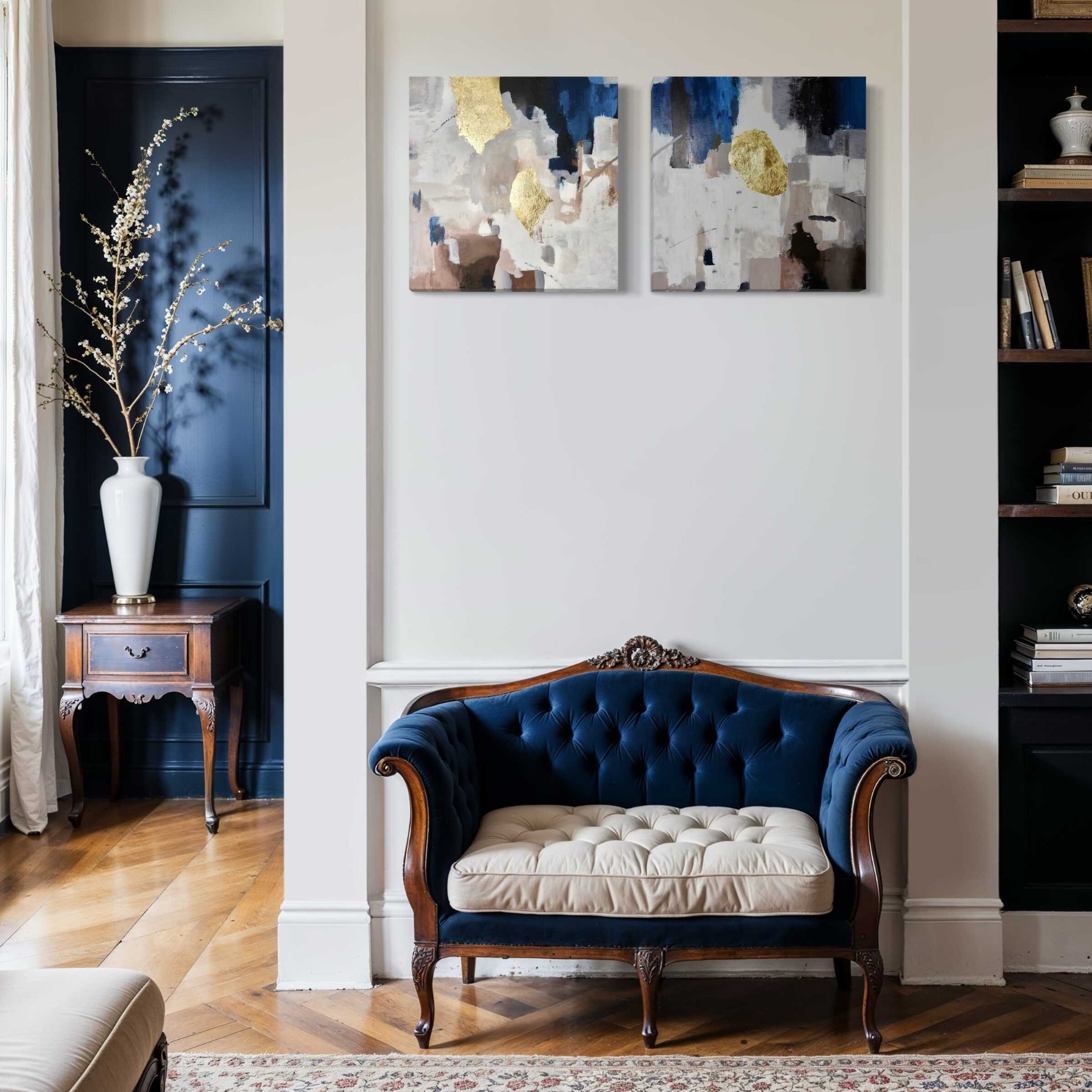 Az "Ikrek" című mű egy eredeti, kézzel festett absztrakt festmény. A kék, fehér és barna árnyalatok harmonikusan illeszkednek modern és minimalista enteriőrökhöz.