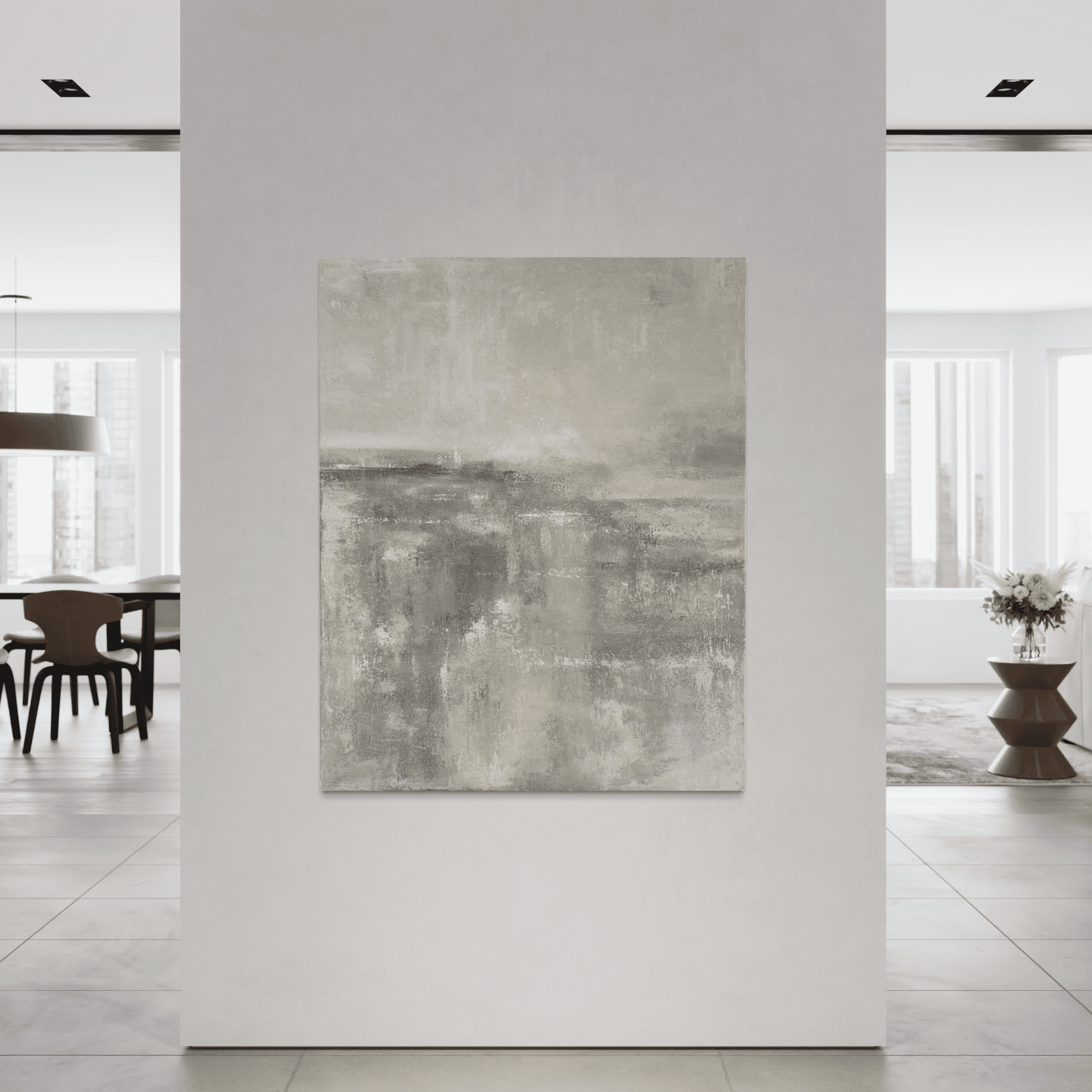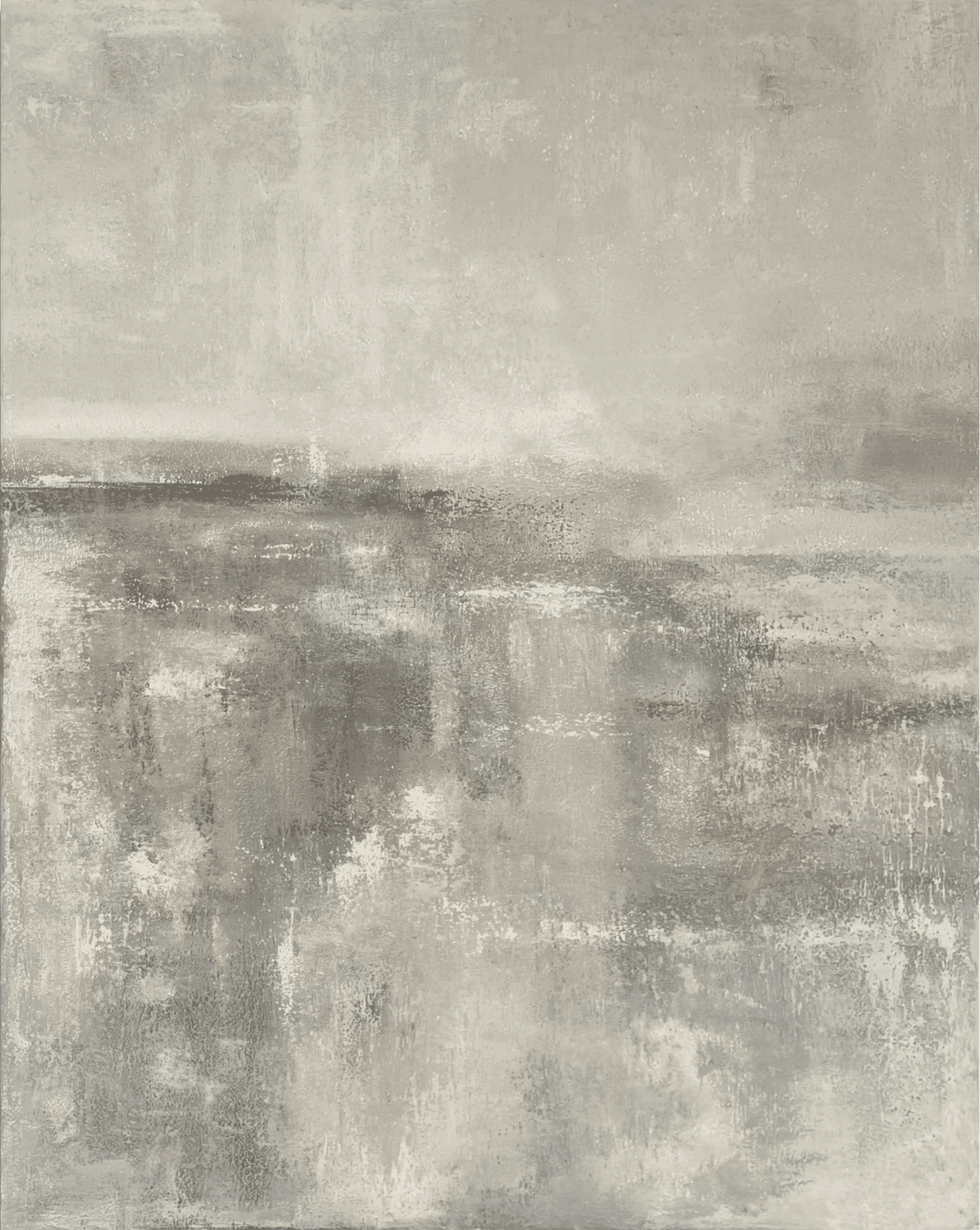A Monolit egy visszafogott, mégis karakteres absztrakt tájkép, amely a természet időtlen nyugalmát és monumentalitását idézi meg. A horizont finoman kirajzolódó vonala egyensúlyt teremt a kompozícióban, miközben a lágy átmenetek csendes, meditatív hangulatot sugároznak.
