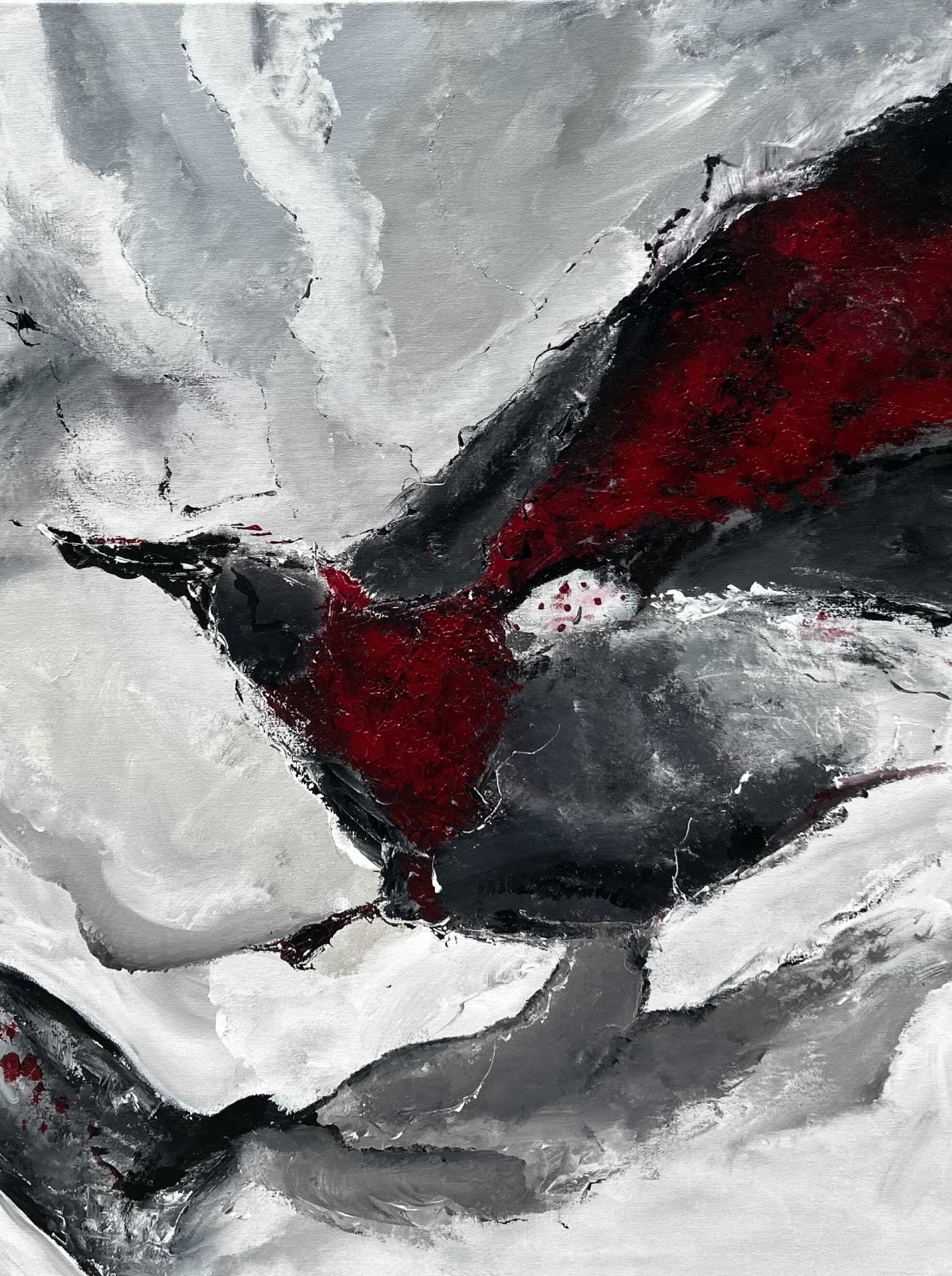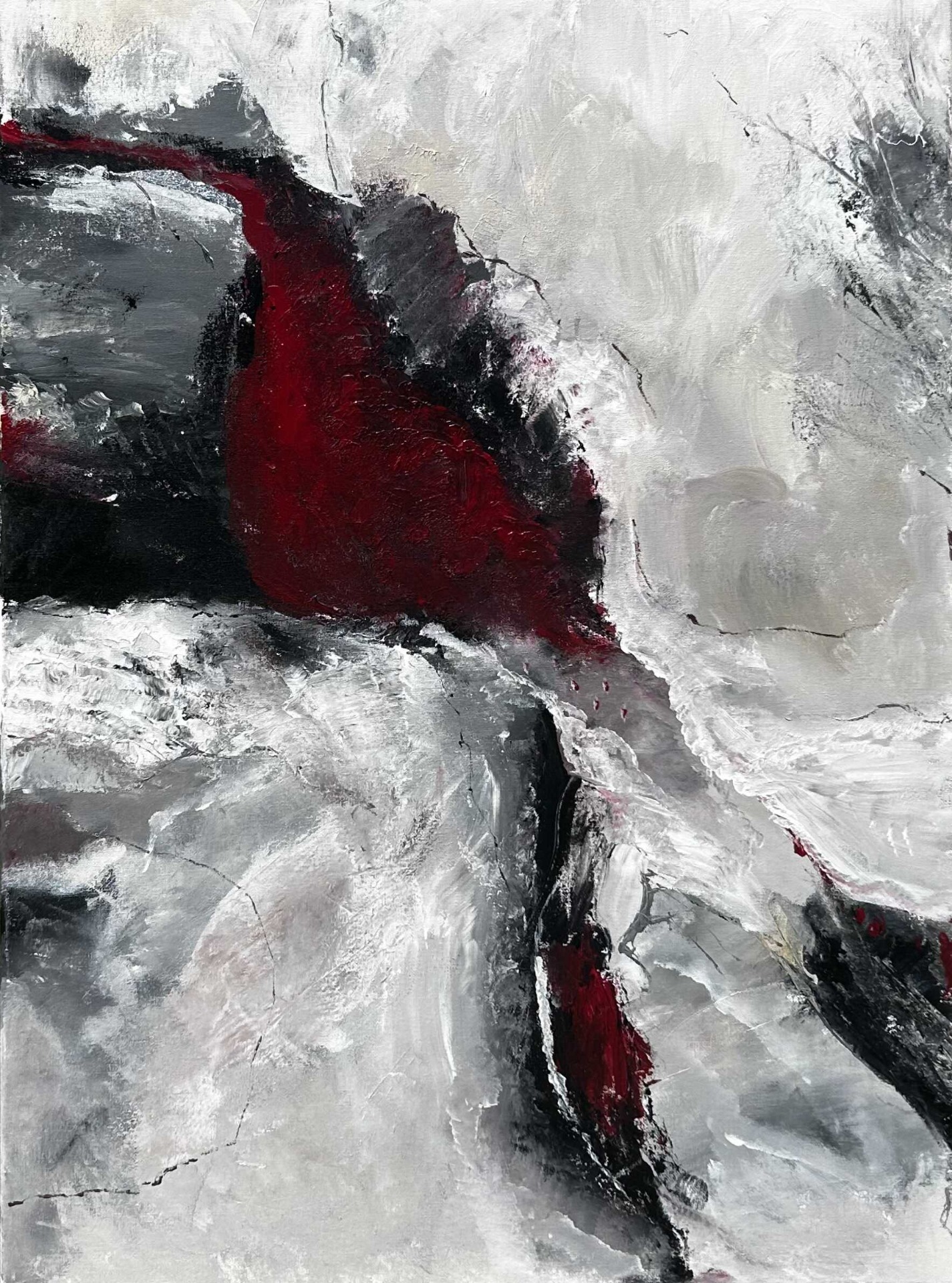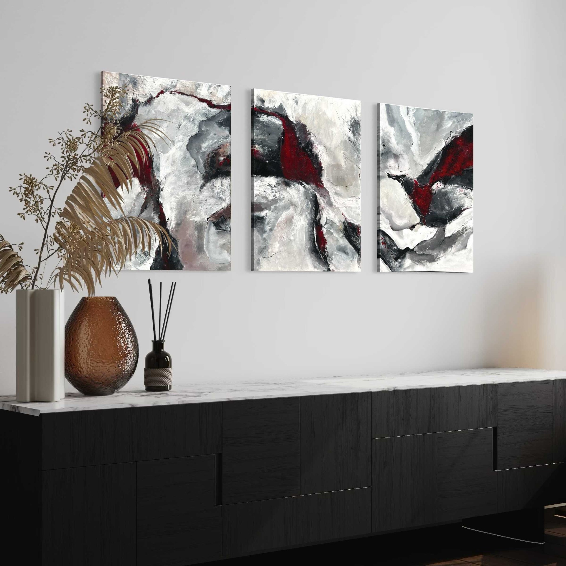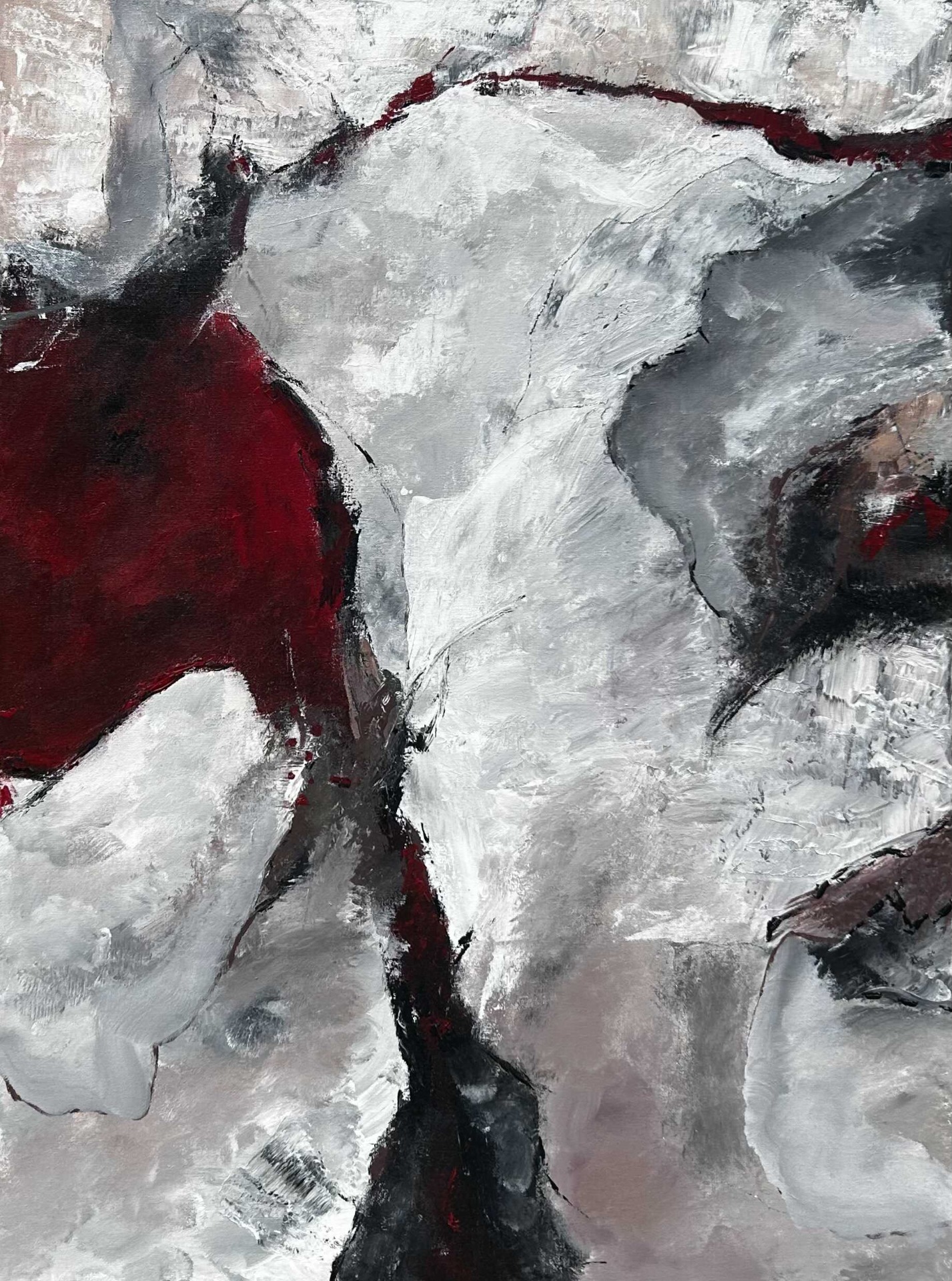 A "Rubin" című mű egy eredeti, kézzel festett absztrakt festmény. A fekete, fehér szürke és bordó árnyalatok harmonikusan illeszkednek modern és minimalista enteriőrökhöz.
