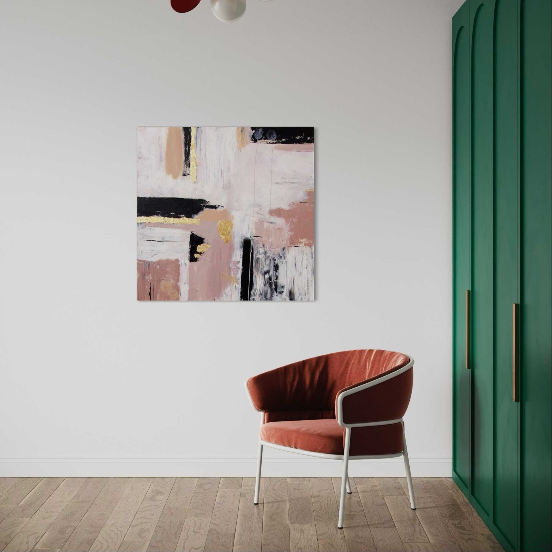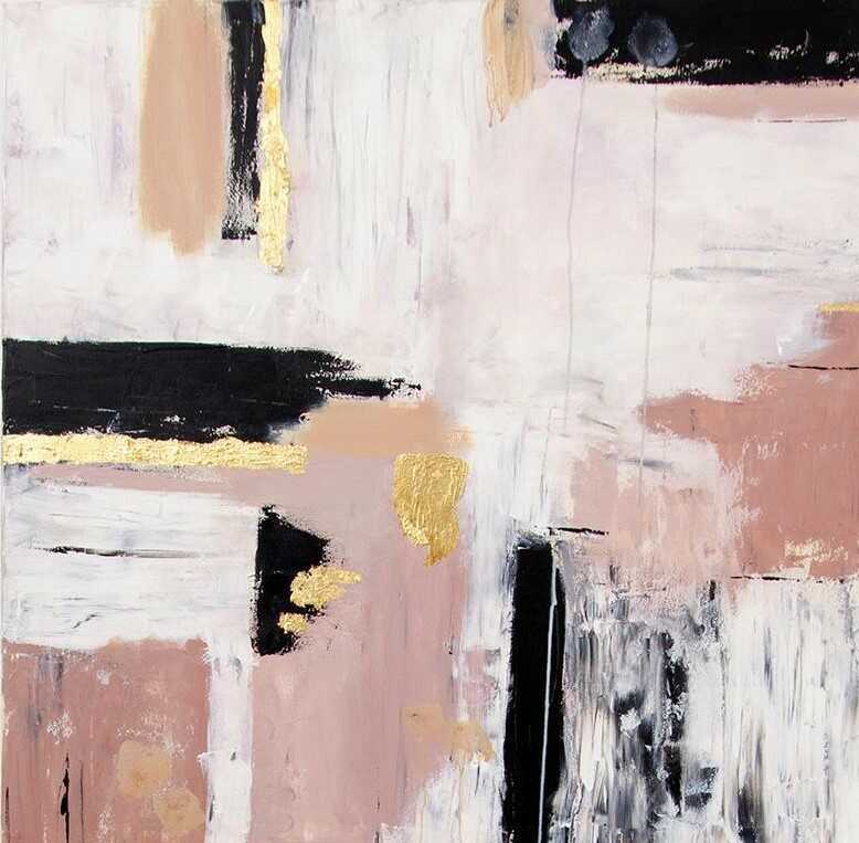 A "Szerelem" című mű egy eredeti, kézzel festett absztrakt festmény. A bézs, rózsaszín, fekete és arany árnyalatok harmonikusan illeszkednek modern és minimalista enteriőrökhöz.
